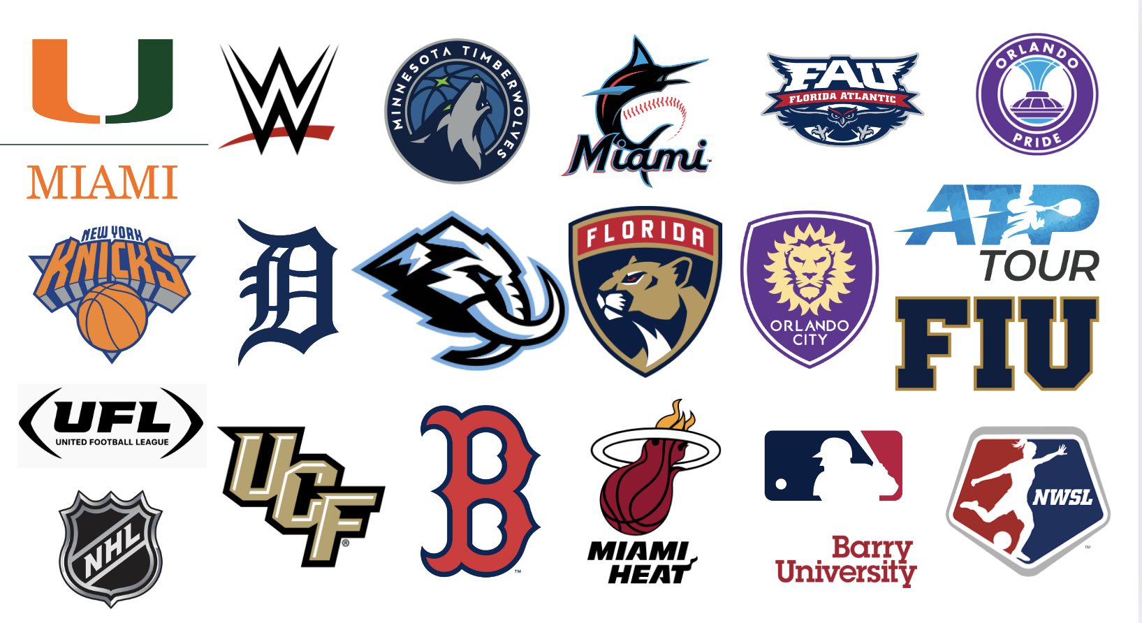 – Pro teams (NBA, MLB, MLS, NHL, NCAA)